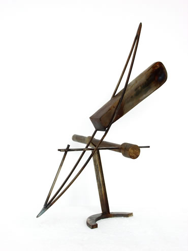 Seismo II: Stahlplastik, 2013, schwingender Raum- und Erschütterungsfühler.